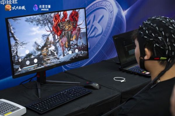 工作人员在现场演示了仅靠脑机接口操控动作游戏《黑神话:悟空》,通过视觉反应与大脑信号的关联再结合大脑意念,实现击打、躲避等复杂交互,流畅程度堪比用鼠标、键盘操作。