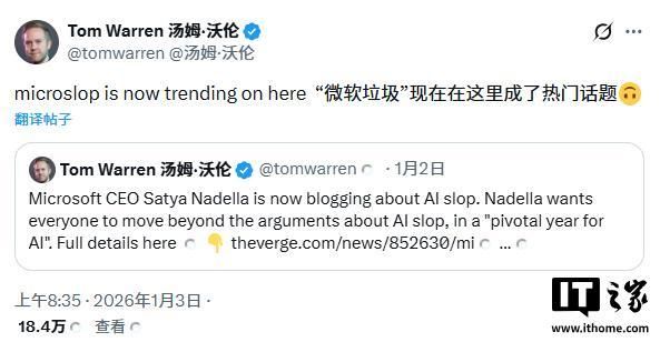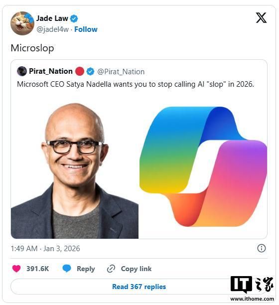 如此看来,整个社会显然并未如纳德拉所期望的那样,做好接纳人工智能的准备。在媒体发布相关报道后,“微软垃圾”(Microslop)一词于昨日在社交平台 X 上迅速成为热门话题。