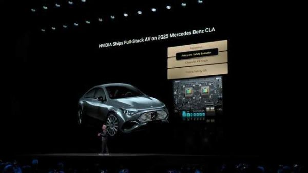 Alpamayo 主要面向 L4 级自动驾驶,但如何在竞争激烈的 L2 级辅助驾驶市场站稳脚跟,是英伟达当前面临的更紧迫挑战。同场发布会上,黄仁勋也公布了 L2 领域的最新商业化进展,2025 款梅赛德斯-奔驰 CLA 将搭载英伟达的 L2 级全栈辅助驾驶方案,其硬件基础是 2 颗英伟达 Thor 芯片,计划于今年一季度在美国上路,二季度在欧洲上路。