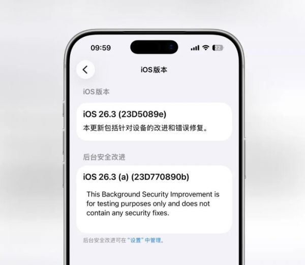 iOS 26.3 Beta(a)就是纯粹的安全补丁,没有任何新功能。