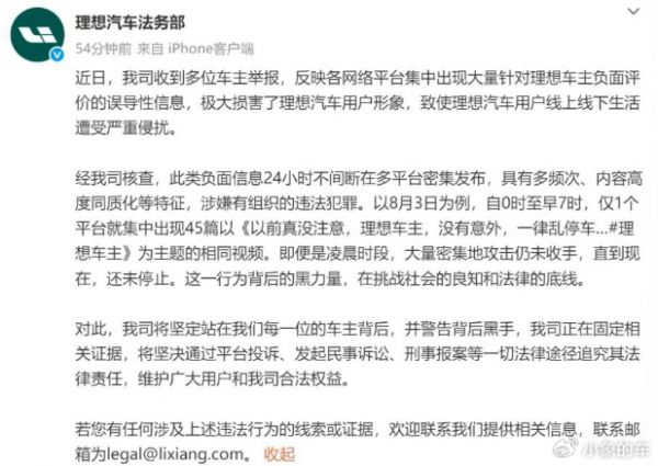 例如理想汽车去年8月份,遭遇大规模关于“车主素质差”等集体舆情,很明显就是受到了竞争对手有组织、有规划的“水军攻击”。