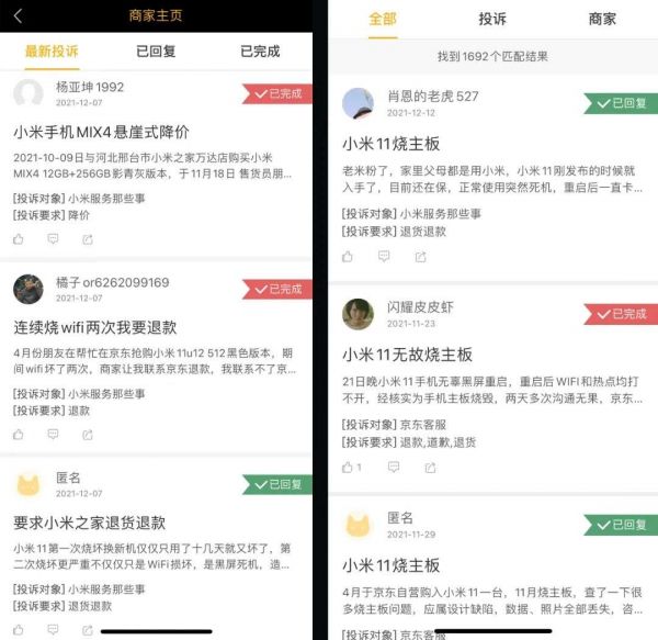 “小米11WIFI问题换货后二次出现问题,要求退货”、“小米11出现大批量主板损坏问题,官方只换不修不退款退货”、“小米11Pro突然黑屏无法开机”……清一色的投诉让小米11系列质量问题显露无疑。