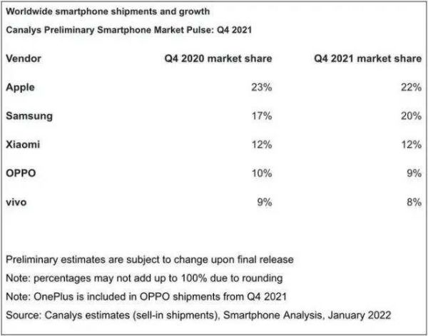 转眼之间,2022年已经过去了将近大半个月的时间。按照以往的惯例,尽管各家手机厂商第四季度以及全年的官方财报估计要等到二月份才能统计出来,但是各家市场调研机构已经开始陆陆续续地公布2021年全球智能手机销售数据,在盘点过去一年的销售情况的同时,开始预判新一年的销量走向。