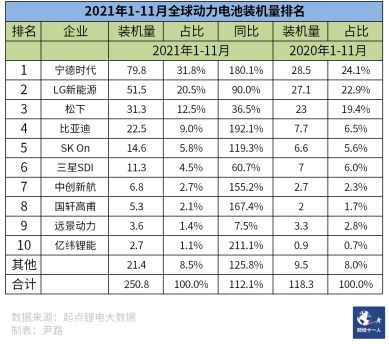 通常超高速增长的市场意味着更多的机会,可能催生众多明星公司。但动力电池市场则不然。在市场、政策、预判等诸多因素的作用下,马太效应已经形成。不论是全球还是中国市场,宁德时代都已经取得明显优势,在高速增长中分到最大份额的可能性最高。第二名、或者第二集团能否有机会分享更大份额的蛋糕,关键就要看它们在2022年如何卡位。
